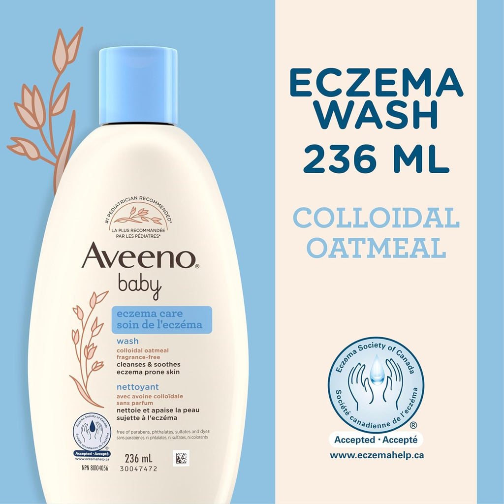 Make bath time more soothing for your baby’s skin with Aveeno Baby Eczema Care Wash. This baby wash relieves minor skin itching and irritation due to eczema, soothes extra-dry skin, and cleanses without damaging the skin’s barrier. An important part of your baby’s skincare routine, it ensures their skin feels hydrated and comfortable.