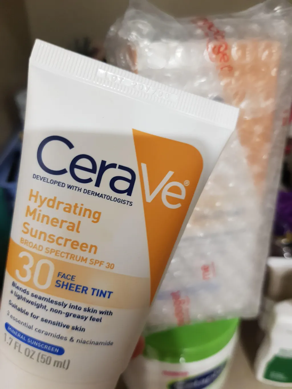 - Apply CeraVe Hydrating Mineral Sunscreen Broad Spectrum SPF 30 Face with Sheer Tint liberally 15 minutes before sun exposure