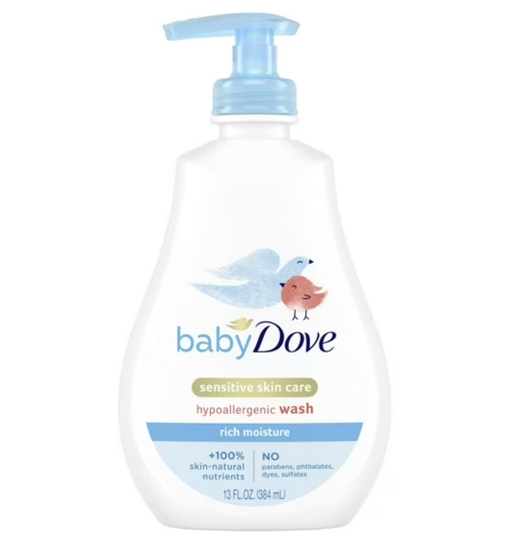 Wet your baby’s hair and skin with warm water and gently apply this baby wash in circular motions before rinsing. Its mild formula is suitable for use on your baby’s face, body and hair. A gentle soap for newborn baby skin, its tear-free formula will help you embrace the fun of bathtime. Follow with Baby Dove Rich Moisture Hypoallergenic Lotion to lock in extra moisture.