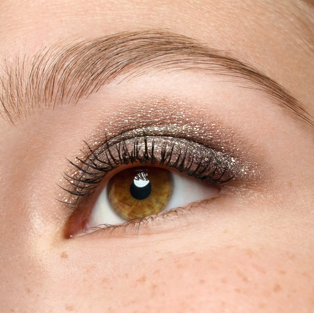Use it as an eyeshadow for a bold, glittery gaze or as a highlighter for that extra twinkle. The lightweight formula glides on smoothly, sets quickly and stays put – no fallout, just glow – even on the go!