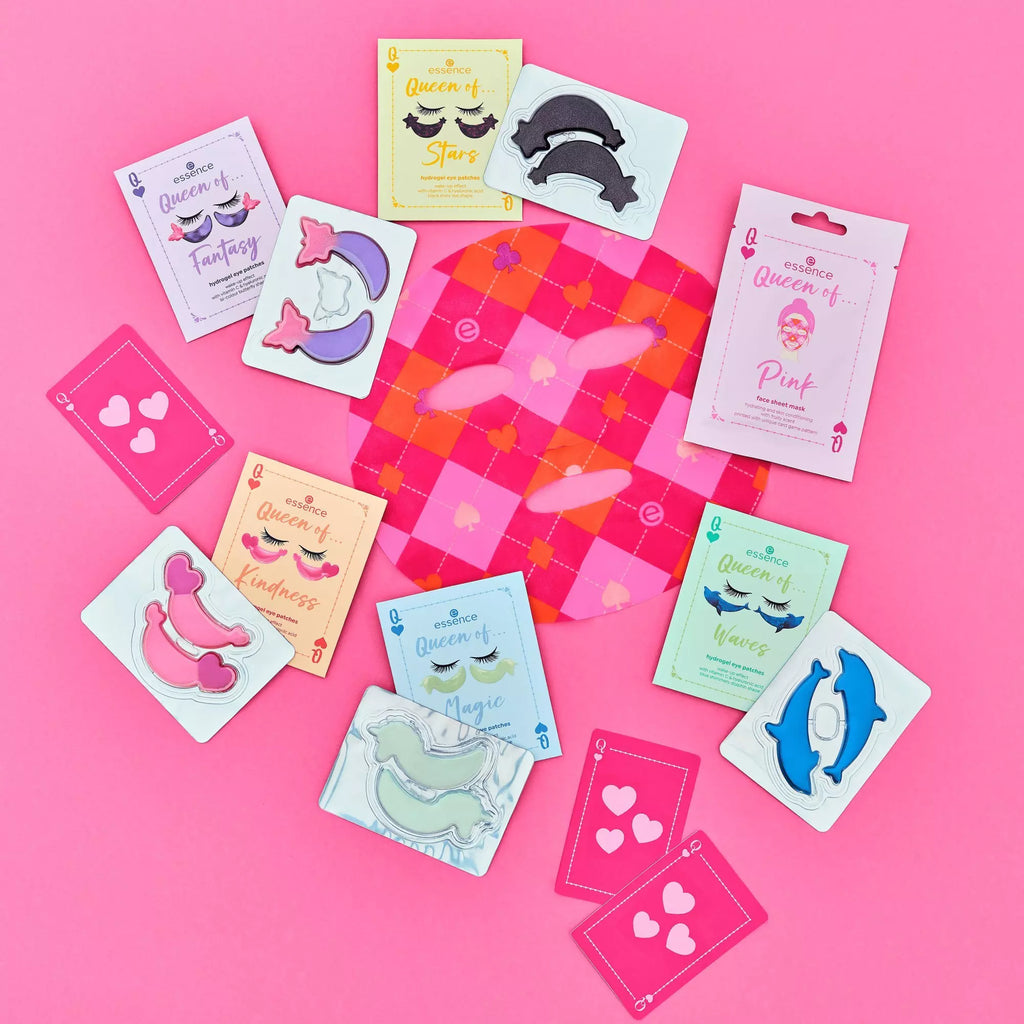 The essence Queen of... Pink face sheet mask 01 Keeping My Pink Poker Face is a fun and effective way to hydrate and condition your skin. Each pack includes a sheet mask, soaked in a nourishing formula enriched with panthenol, hyaluronic acid, and allantoin. These ingredients work together to deeply moisturize and soothe your skin, leaving it feeling refreshed and revitalized.