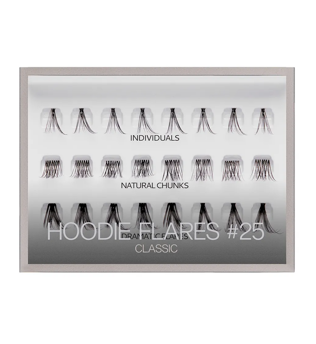 The Hoodie Flares set contains 24 Lash Pieces: