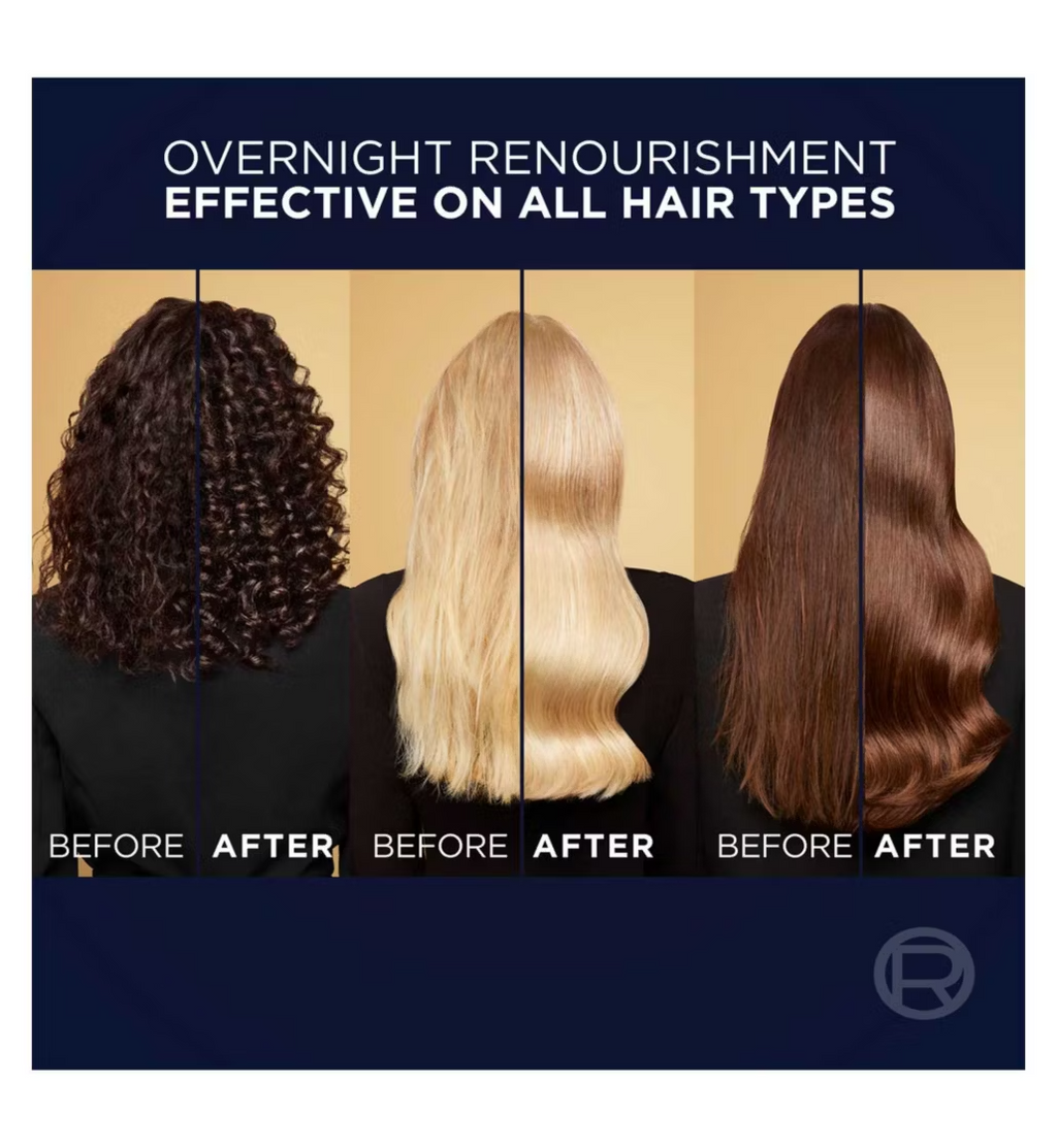 Did you know that night-time is the best moment to care for your hair because it can continuously benefit from our renourishing treatment without the presence of any external aggressors? What makes it effective? Our new transformative formula infused with precious camellia oil targets the vulnerable parts of your hair fibre for intense renourishment overnight. The non-greasy formula provides up to 96h frizz control1 with no weigh down or pillow transfer. Suitable for all: Effective on all hair types, ranging from straight, wavy, curly, and coily.