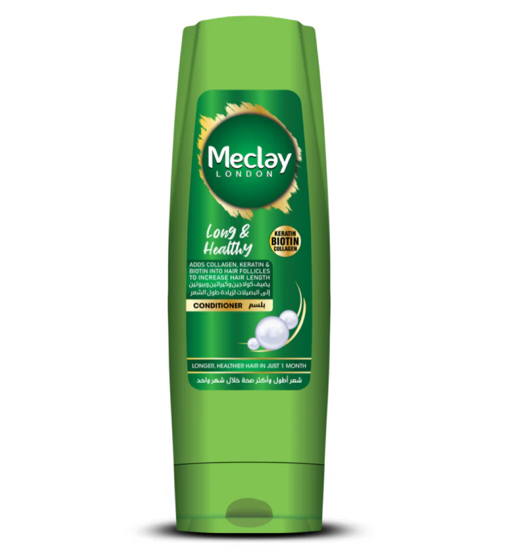 After shampooing with Meclay London Long & Healthy Shampoo, pour a small amount of conditioner into your palm. Apply it to the ends of your hair, and leave it on for a minute before rinsing thoroughly.