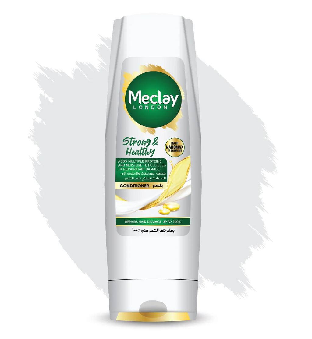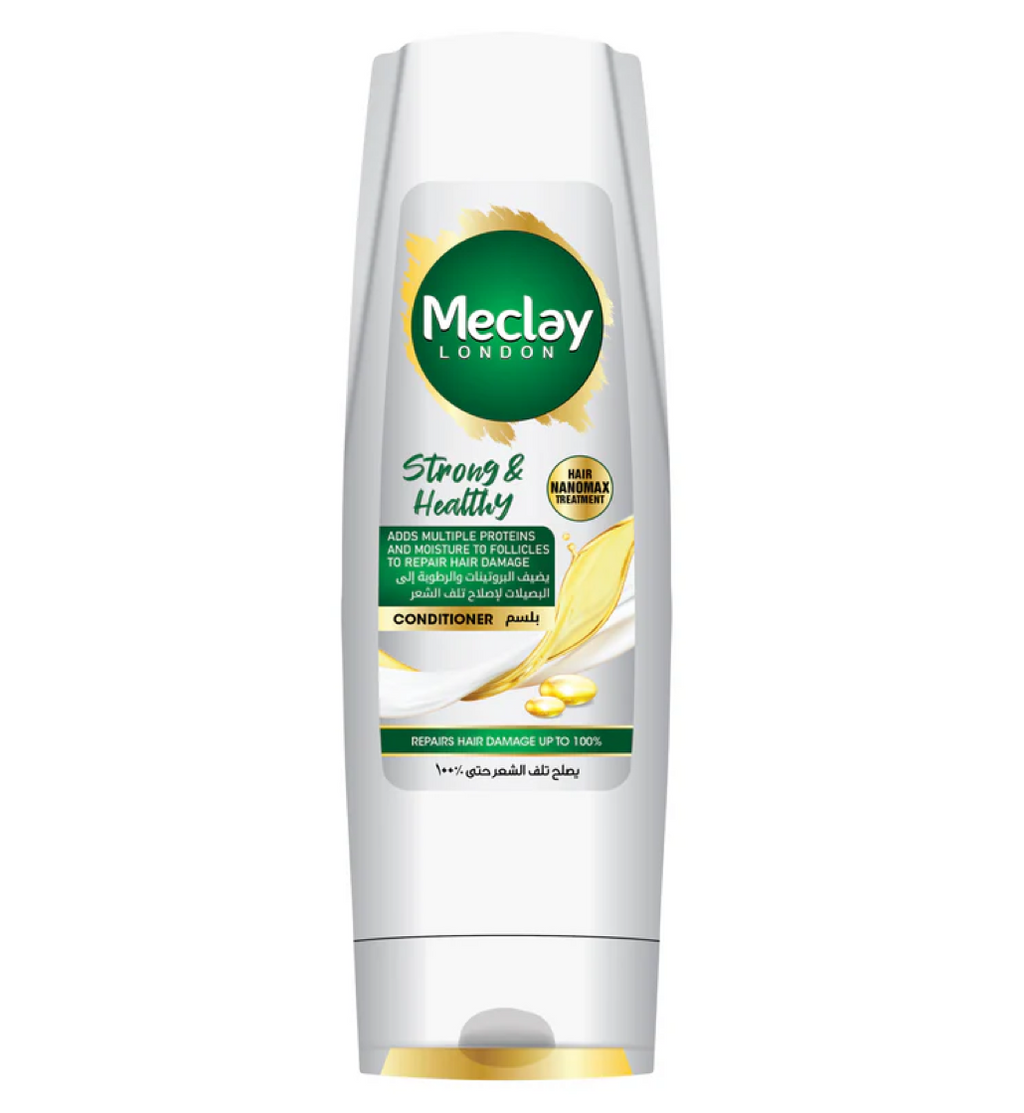 After shampooing with Meclay London Strong & Healthy Shampoo, apply a small amount of conditioner to the palm of your hand, focusing on the ends of your hair. Leave on for a minute, then rinse thoroughly for silky, manageable hair.