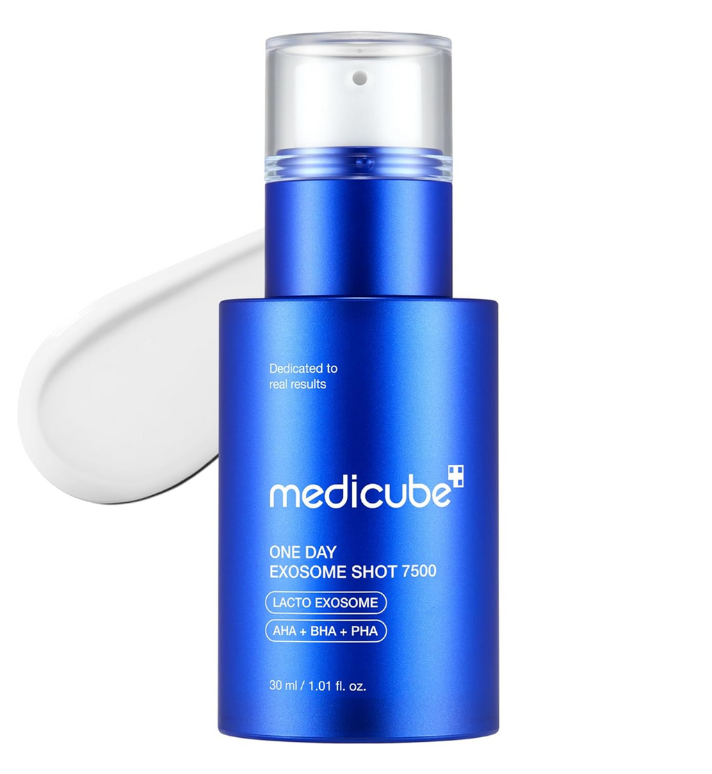 Medicube One-Day Exosome Shot Pore Ampoule 7500 is a high-performance pore care serum powered by 7,500PPM of exosomes, panthenol, and adenosine to deliver visible pore tightening, deep hydration, and firming results in as little as three days.