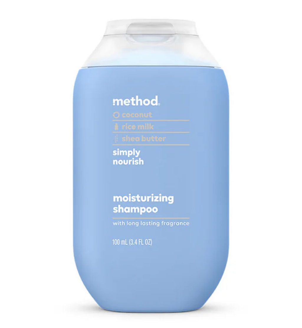 - A moisturizing shampoo infused with coconut, rice milk + shea butter.