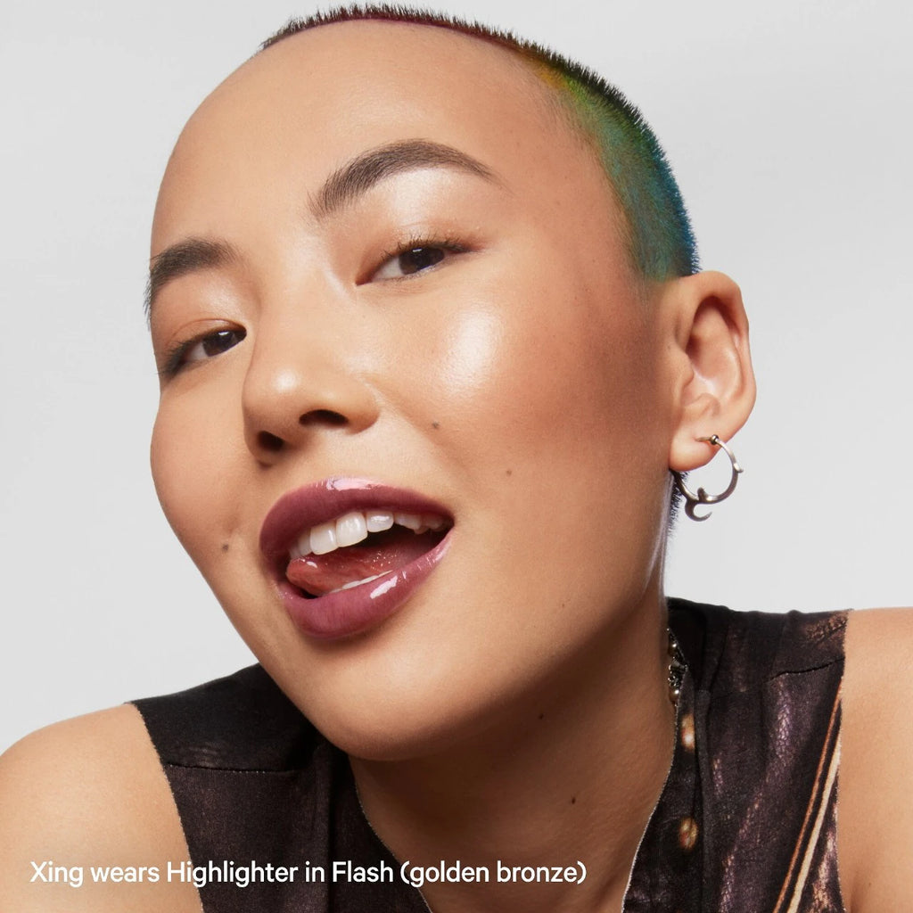 A dewy, non-comedogenic cream highlighter stick with a nourishing formula that builds and blends seamlessly for a radiant, shimmery glow.
