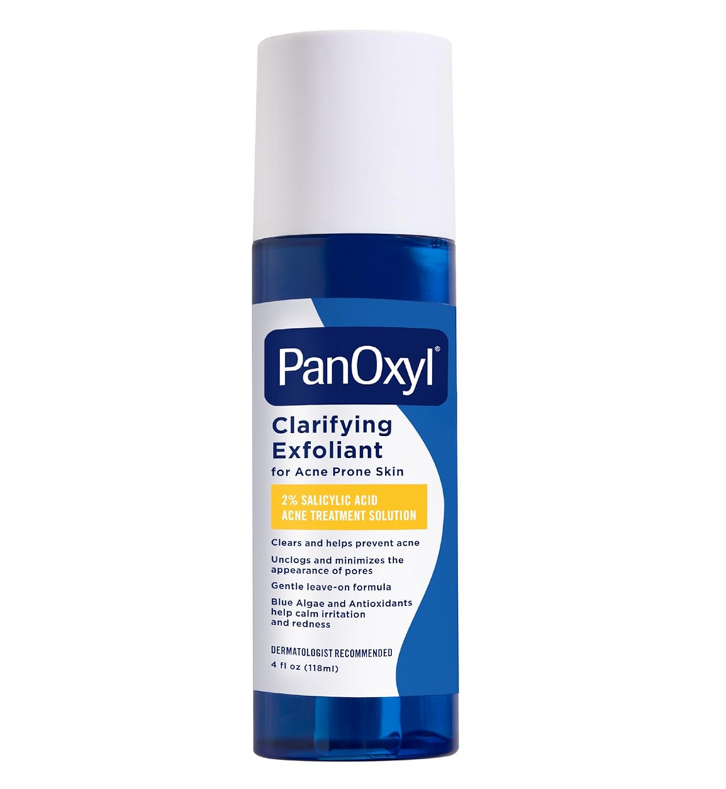 Clear acne and unclog pores with PanOxyl Clarifying Exfoliant 2% Salicylic Acid. Skin can become dry and lackluster when dead skin cells build up on the surface. Salicylic Acid, a Beta Hydroxy Acid (BHA), helps to dissolve dead skin and minimize the production of certain skin oils. Regular exfoliation removes the oil buildup, leading to a smoother, clearer and breakout-free complexion.