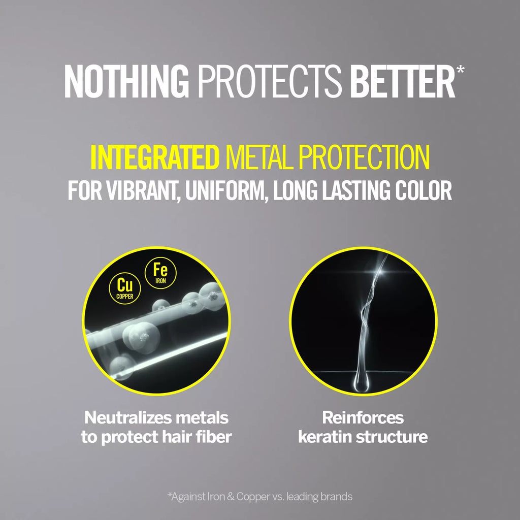 For individuals seeking a vibrant hair dye with sophisticated color, integrated metal protection and the perfect balance between coverage, transparency, color dyes and shine for true-to-tone and high-dimension color from roots to ends.