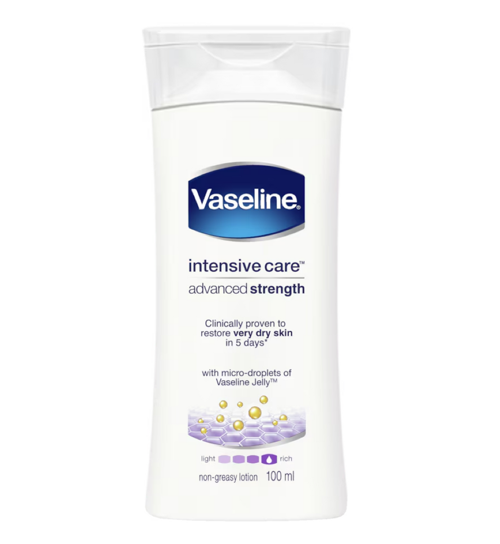 - Vaseline® Intensive Care Advanced Strength Body Lotion moisturises very dry skin